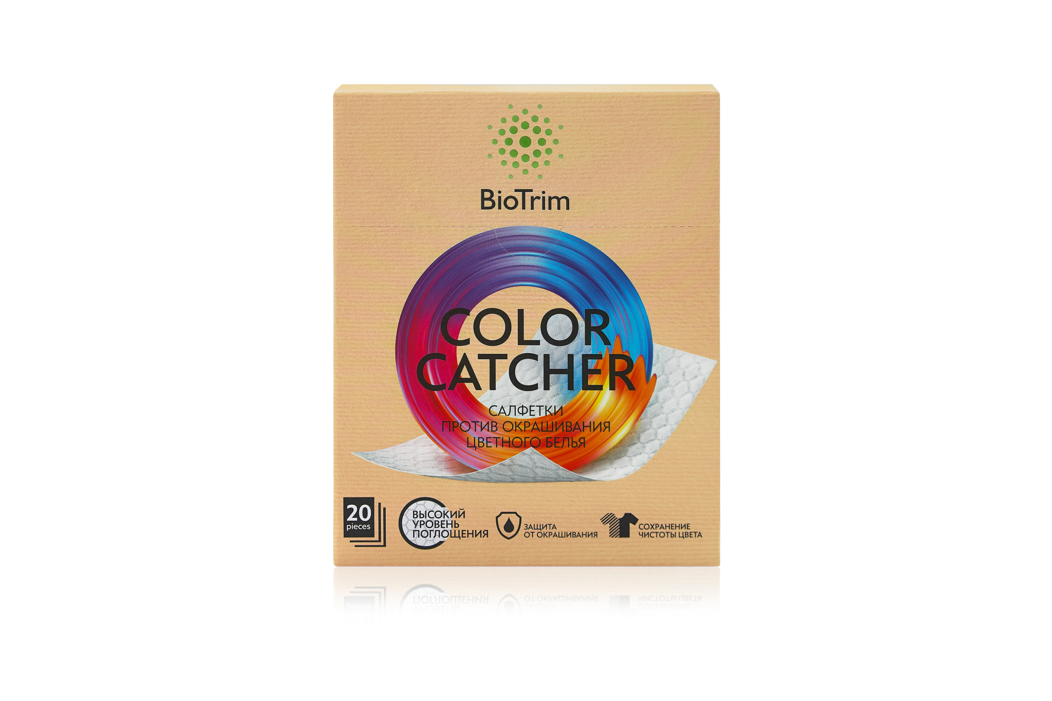 Салфетки против окрашивания BioTrim Color Catcher — незаменимое средство для ухода за цветными бельем и одеждой. Уникальная структура волокна с высоким уровнем поглощения позволяет быстро впитывать и блокировать пигменты краски и мелкие частицы грязи, помогая избежать окрашивания и сохранить чистоту цвета белья и одежды.